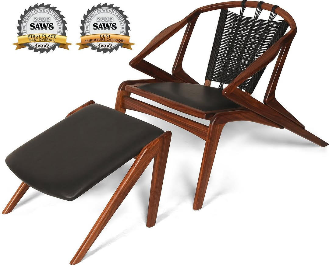 Lounge Chair (Black Curly Walnut with Blue Leather)